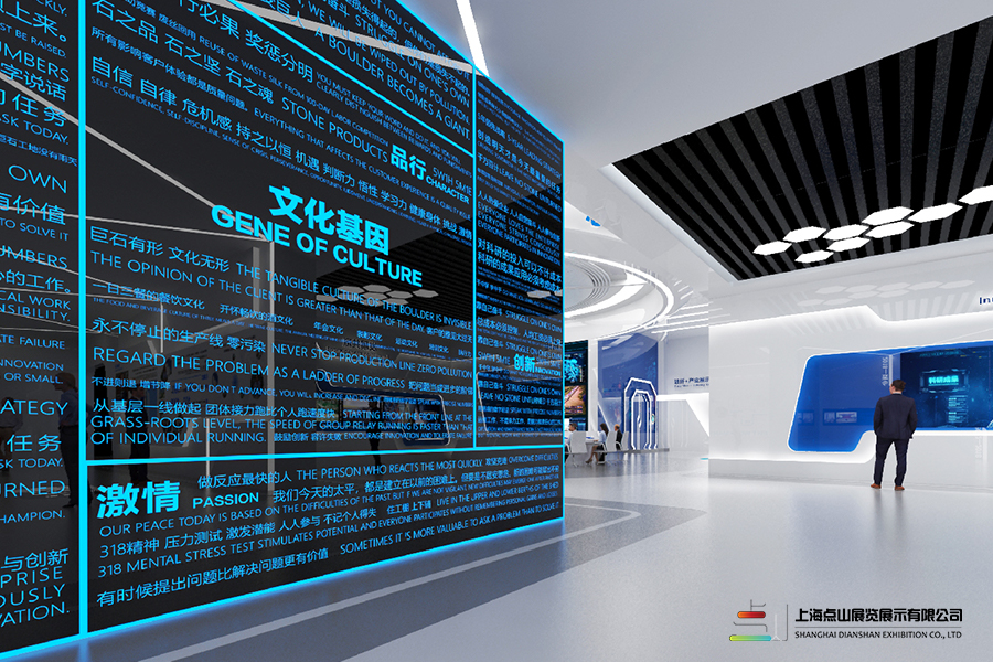 主題突出,特色鮮明。充分展現(xiàn)巨石文化、戰(zhàn)略方向,體現(xiàn)大氣、穩(wěn)重、明亮的整體色彩搭配和空間感受。裝修材料要多運(yùn)用玻纖增強(qiáng)復(fù)合材料,將部分展品嵌入裝飾中,做到美觀且實(shí)用。跳出原有展廳展陳框架,要有前瞻性和創(chuàng)新性。
