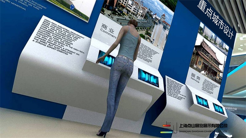靖邊規(guī)劃展館策劃開(kāi)始就采用大空間設(shè)計(jì),序廳采用暖色調(diào),讓參觀者體驗(yàn)到一種關(guān)懷,此展館共分多個(gè)展區(qū),科技含量高、互動(dòng)形式多、規(guī)劃標(biāo)準(zhǔn)比較高,在采取展板、模型等傳統(tǒng)展示手段的基礎(chǔ)上,大量采用聲、光、電、影視等生動(dòng)形象的手法,將多通道投影等現(xiàn)代聲光電技術(shù) 融入展示環(huán)節(jié),將縣域版圖面積高度濃縮,真實(shí)再現(xiàn)了當(dāng)?shù)氐陌l(fā)展歷程、生態(tài)建設(shè)、社會(huì)責(zé)任、城市形態(tài)、重點(diǎn)企業(yè)和遠(yuǎn)景規(guī)劃,全面展示了靖邊當(dāng)?shù)氐囊?guī)劃、建設(shè)和發(fā)展成就。